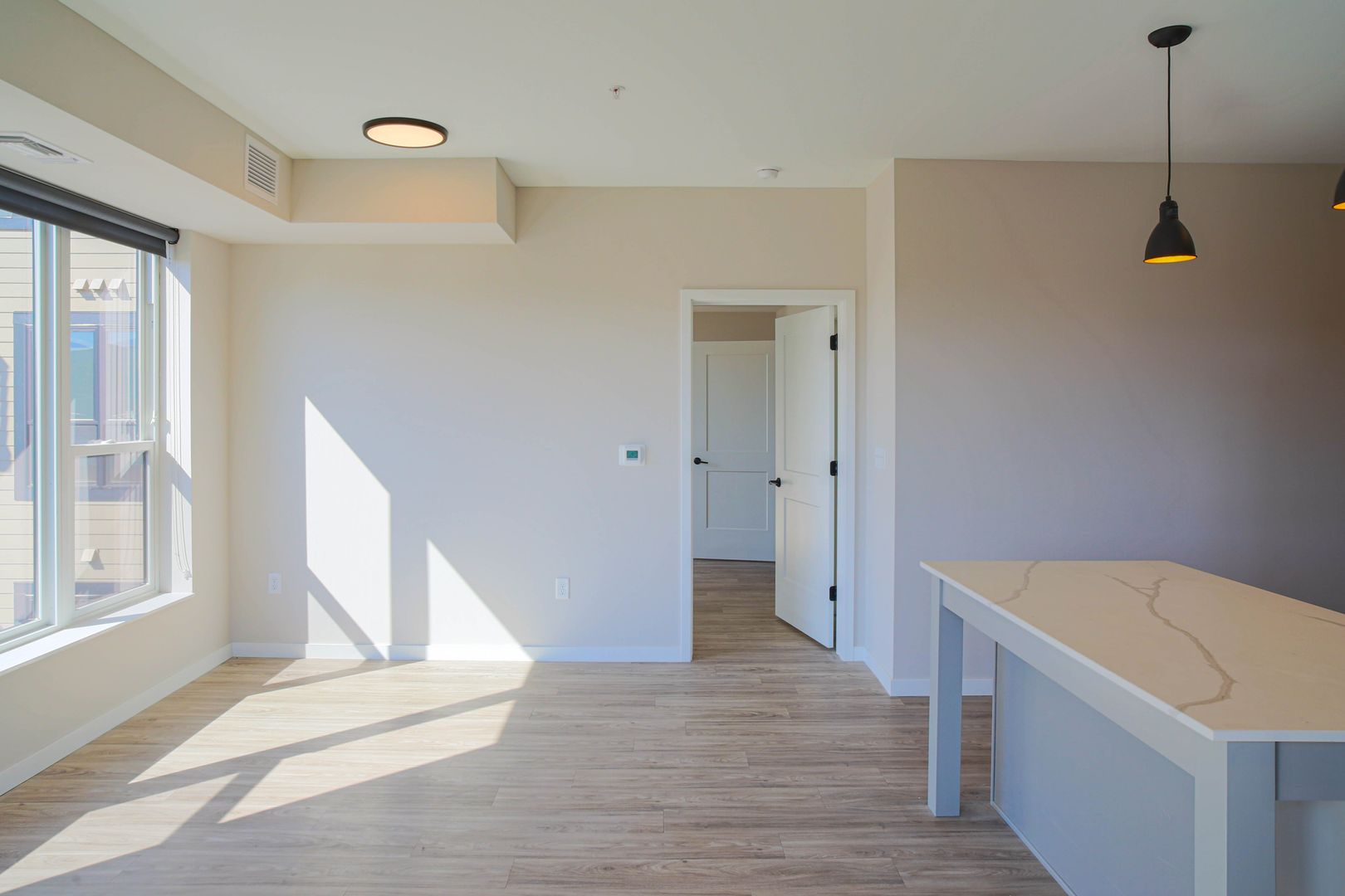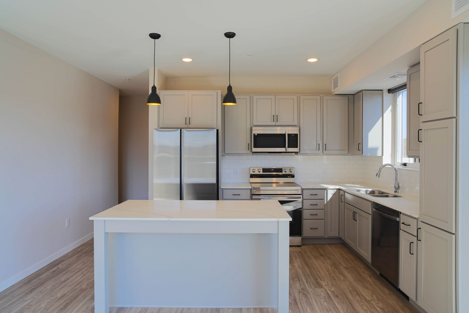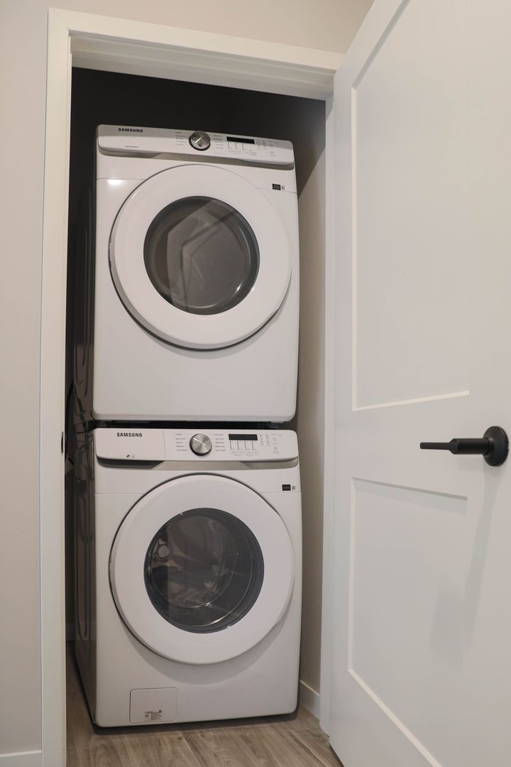 Upon entering this spacious two bedroom, you are welcomed into a life of lavish living with hard surface countertops, LVT flooring, 9-foot ceilings, contemporary light fixtures with LED lighting, stainless steel appliances, oversized windows & patio doors with black out shades and in-unit laundry.